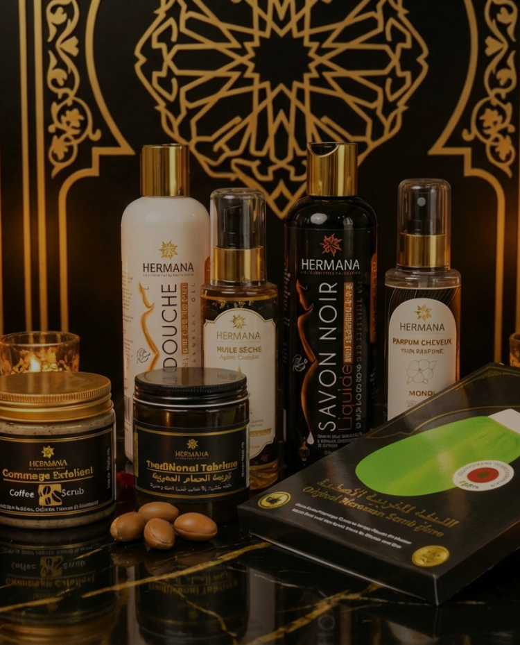 L’univers Hermana Cosmetic est une célébration de la beauté authentique, puisant sa force au cœur des terres marocaines pour offrir des soins d’exception. De l’incontournable Huile d’Argan pure pressée à froid au prestigieux Sérum de Figue de Barbarie, chaque formule est un concentré d'actifs naturels—vitamine E, omégas et antioxydants—conçu pour sublimer la peau et les cheveux. Que vous recherchiez l'évasion sensorielle avec nos Huiles de Massage aromatiques, la purification profonde de notre Gamme Hammam (Ghassoul, Savon Noir, Tabrima), ou l'efficacité ciblée de nos soins capillaires anti-chute, Hermana transforme chaque geste en un rituel sacré. Plus qu’une marque, c'est une promesse de pureté et d’éclat, où le luxe du naturel rencontre le bien-être absolu.