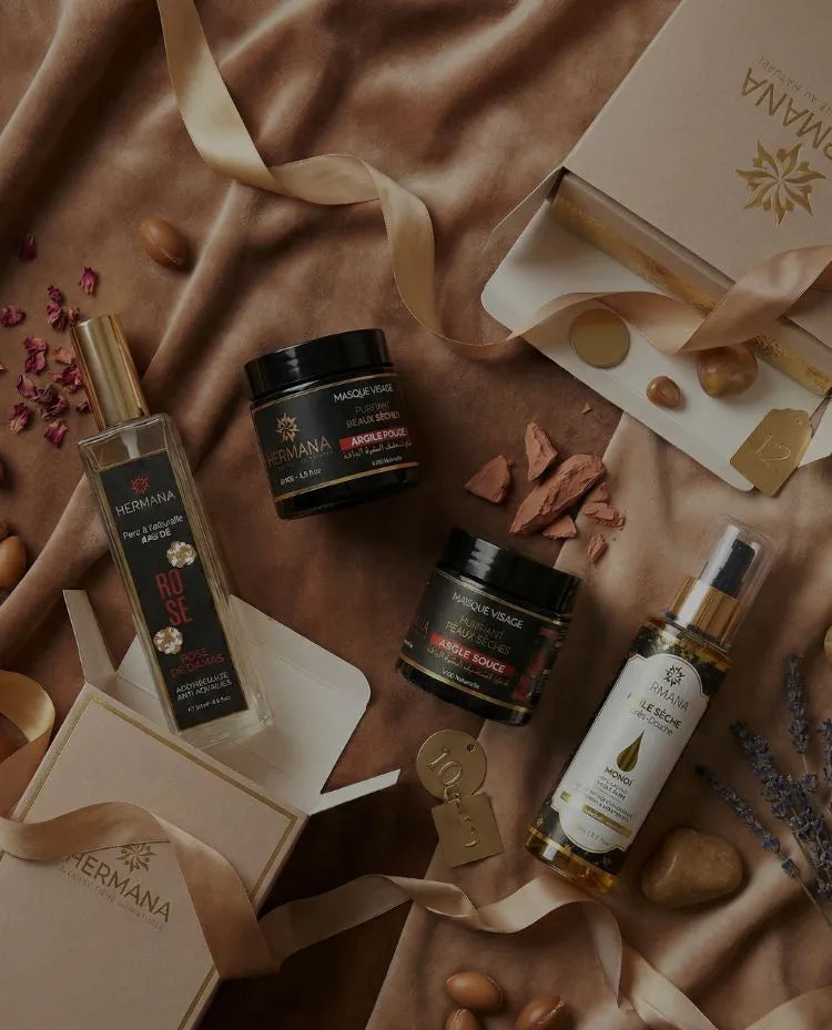 L’univers Hermana Cosmetique est une célébration de la beauté authentique, puisant sa force au cœur des terres marocaines pour offrir des soins d’exception. De l’incontournable Huile d’Argan pure pressée à froid au prestigieux Sérum de Figue de Barbarie, chaque formule est un concentré d'actifs naturels—vitamine E, omégas et antioxydants—conçu pour sublimer la peau et les cheveux. Que vous recherchiez l'évasion sensorielle avec nos Huiles de Massage aromatiques, la purification profonde de notre Gamme Hammam (Ghassoul, Savon Noir, Tabrima), ou l'efficacité ciblée de nos soins capillaires anti-chute, Hermana transforme chaque geste en un rituel sacré. Plus qu’une marque, c'est une promesse de pureté et d’éclat, où le luxe du naturel rencontre le bien-être absolu.